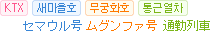 <主要駅名> ソウル 서울 Seoul 龍山(ヨンサン) 용산 Yongsan 光明(クァンミョン) 광명 GwangMyeong 天安牙山(チョナン・アサン) 천안아산 CheonanAsan 大田(テジョン) 대전 Daejeon 金泉(キムチョン) 김천 Gimcheon