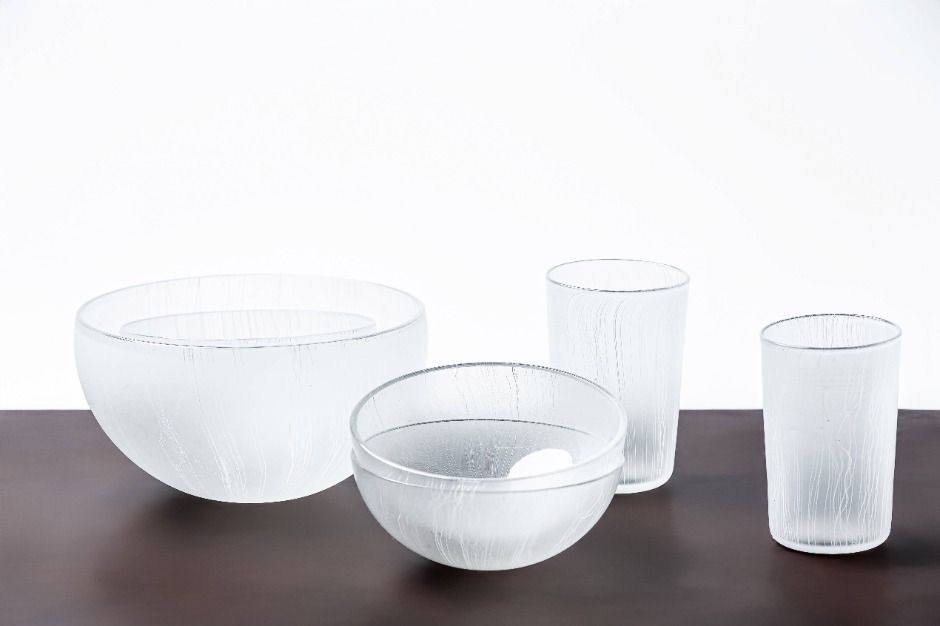 デザートボウル(フングラス) 透明なガラスに流れるようなラインと控えめなデザインが印象的なデザートボウルです。チョンジュ(清州)のガラス工芸ならではの精巧さを味わうことができ、ボウルからカップまで多様な形がそろっています。