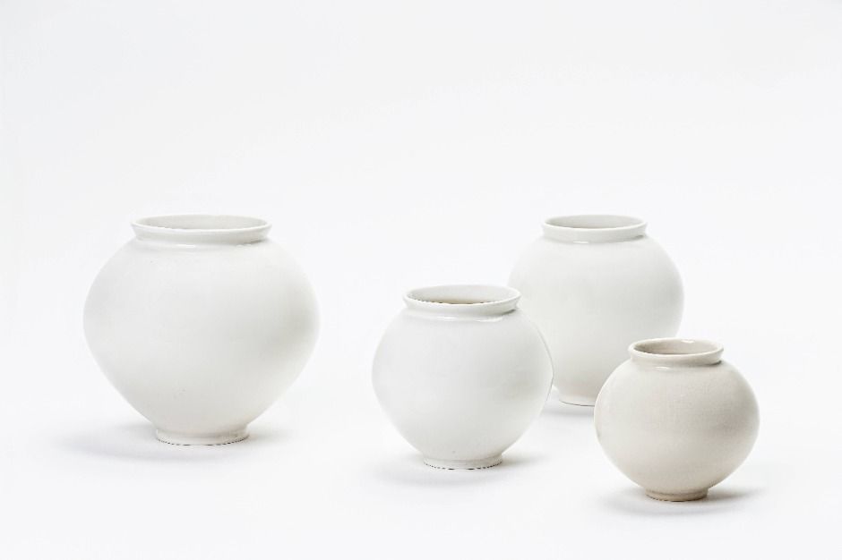 タルハンアリ(満月壺) / カラムシプレート / デザートボウル(写真提供:韓国工芸館ミュージアムショップ)