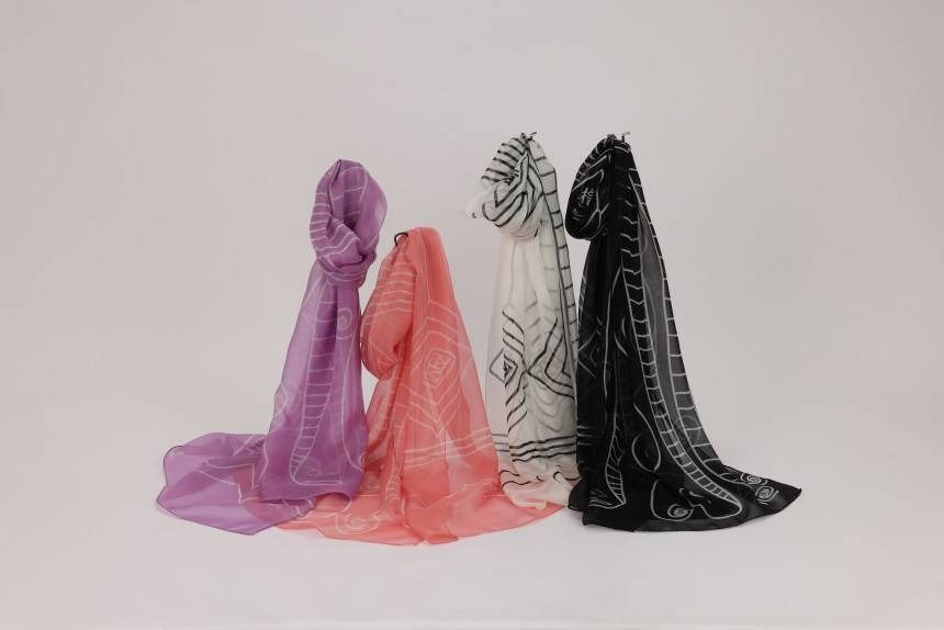 直指スカーフ直指の内紙や活字デザインをモチーフにしたスカーフです。清楚で洗練されたデザインが魅力で、活用度抜群のアイテムです。