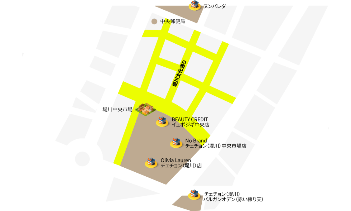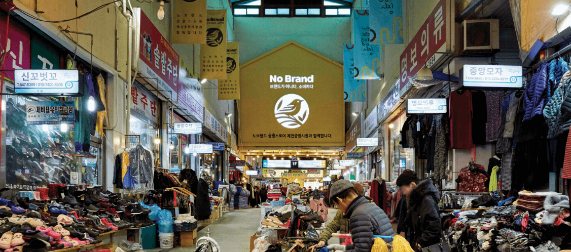 チェチョン(堤川)の中心繁華街に位置するチェチョン中央市場は、地下1階・地上3階建ての建物内にあります。日常生活に必要なものはたいてい揃っており、特に衣料品や韓服を扱うお店がたくさんあります。また、中央市場の近くには様々な韓方の生薬を扱うトンムン(東門)市場や、グルメで有名なネト(奈吐)伝統市場があります。中央市場は、チェチョン駅とチェチョン高速バスターミナルの間にあるのでアクセスが便利なだけでなく、近くに宿を取ったなら食事に困ることはありません。市場のあちこちを巡ったら、チェチョンの名物である赤い練り天のお店「チェチョン・パルガンオデン」で韓国の「プンシク(粉食)」と呼ばれるストリートグルメをぜひ味わってみてください。リーズナブルな上に回転が速いので、人気の割に待ち時間はあまり長くないそうです。中央市場で有名な他のストリートフードと一緒にテイクアウトして、宿で食べるのも一つの方法です。伝統市場で出来合いのものを買うよりは宿で自分で料理して食べたいなら、「No Brandチェチョン中央市場店」に行ってみてください。伝統市場との共生を掲げているスーパーで、水産物や精肉などの生鮮食品も扱っています。