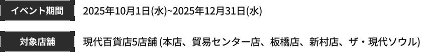 - Plus Point + Missionは「ザ・現代ソウル」店で使用が制限されます。また、他店においてリワードイベントとの重複参加はできません。