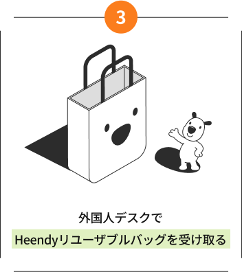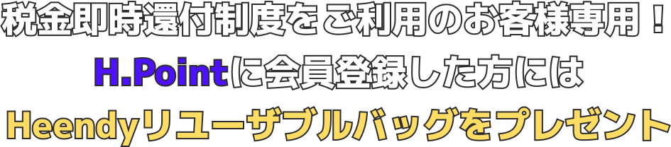 - 「Heendyリユーザブルバッグ」は、税金即時還付の領収書を提示 + Global H.Pointに会員登録した方に贈られます。