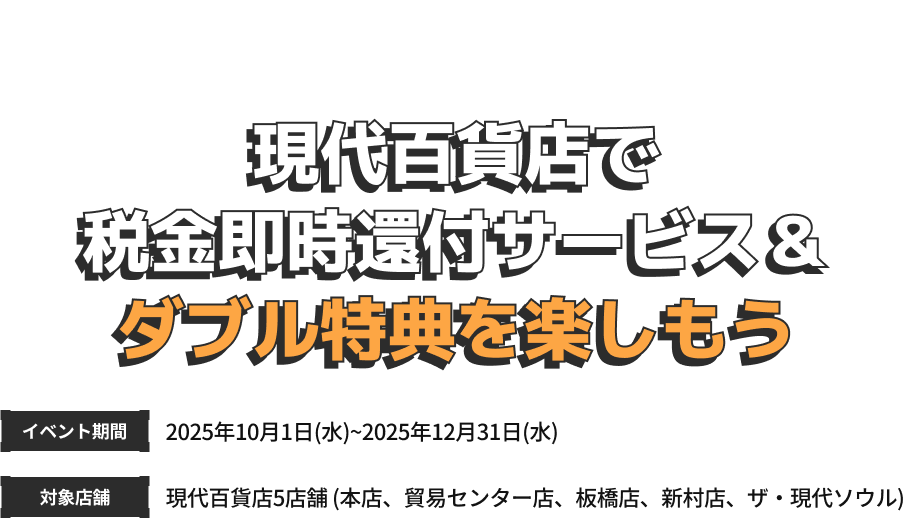 - 本イベントは税金即時還付サービスのご利用に加え、H.Pointに会員登録された外国人のお客様に限り参加できます。
