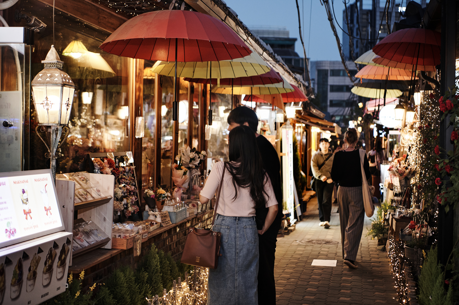 北村、西村に次いで韓屋の人気スポットとして浮上した益善洞は、狭い路地に軒を並べる伝統家屋の素朴な美しさを楽しめるエリアです。クモの巣のように伸びた路地裏で、ランチを食べ、お茶を飲み、タロット占いやゲームセンターでゲームを楽しみ、セルフスタジオで思い出を写真に残していると、一日があっという間に過ぎてしまいます。地下鉄5号線チョンノサムガ駅の3、4、6、7、8番出口一帯の屋台横町も近いので、ソウルのナイト文化を楽しみたければ一日中この街でぶらぶらしても飽きないはずです。