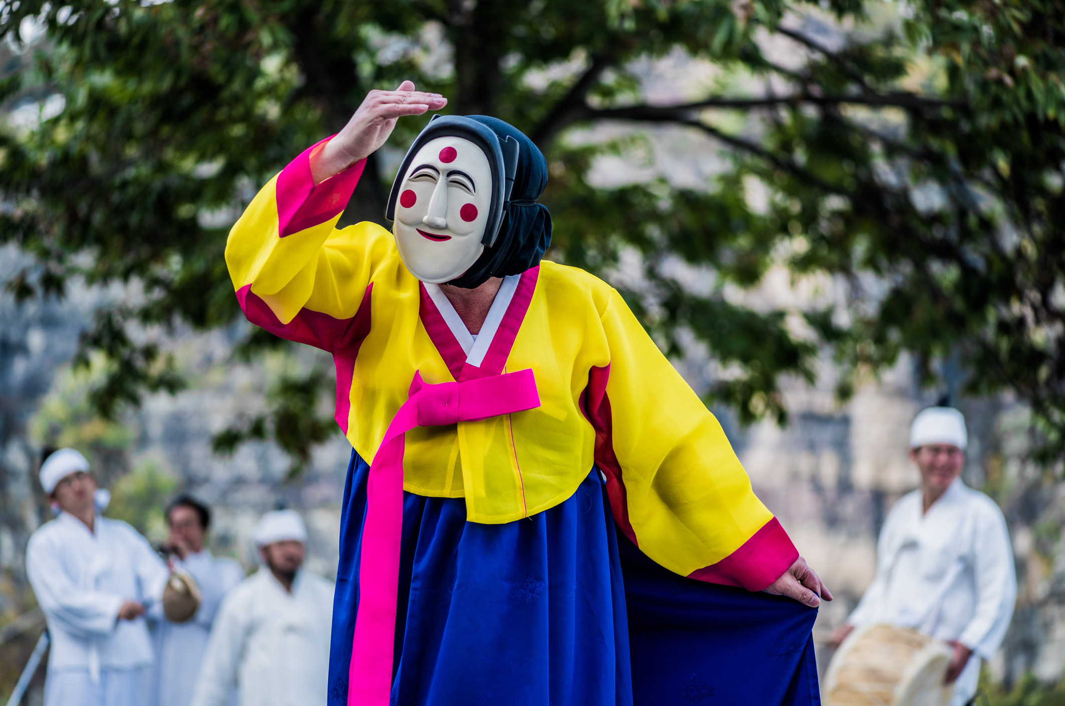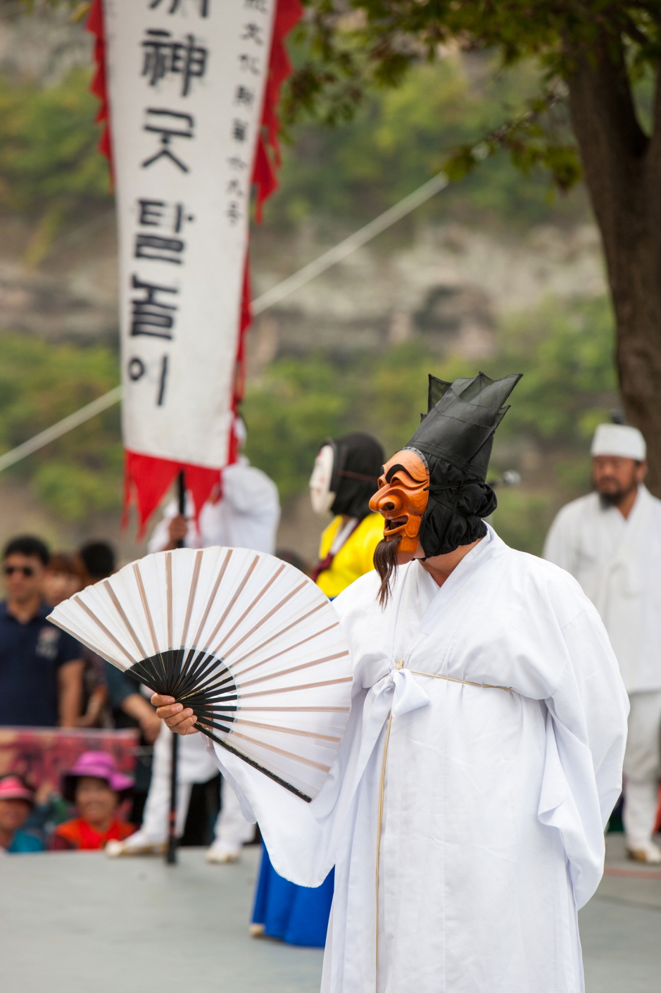 代々豊山柳氏一族が暮らしてきた集姓村で、朝鮮時代の儒学者謙菴リュ・ウンニョン(柳雲龍)と西厓リュ・ソンニョン(柳成龍)の生まれたところです。高麗時代と朝鮮時代の建築様式が共存する「養真堂」、イギリスのエリザベス2世の訪問時に記念に植えた木がある忠孝堂、豊山柳氏亀村派の宗家である亀村故宅、99間の家と呼ばれる北村宅と南村宅など、歴史的な宝物が村に散在しています。村の周りを悠々と流れる洛東江や芙蓉台の見事な絶景、広い白洲、茂った老松林なども村の見どころです。月曜日を除いて毎日午後2時に行われる河回別神グッ・タルノリ(仮面劇)公演もお逃しなく。