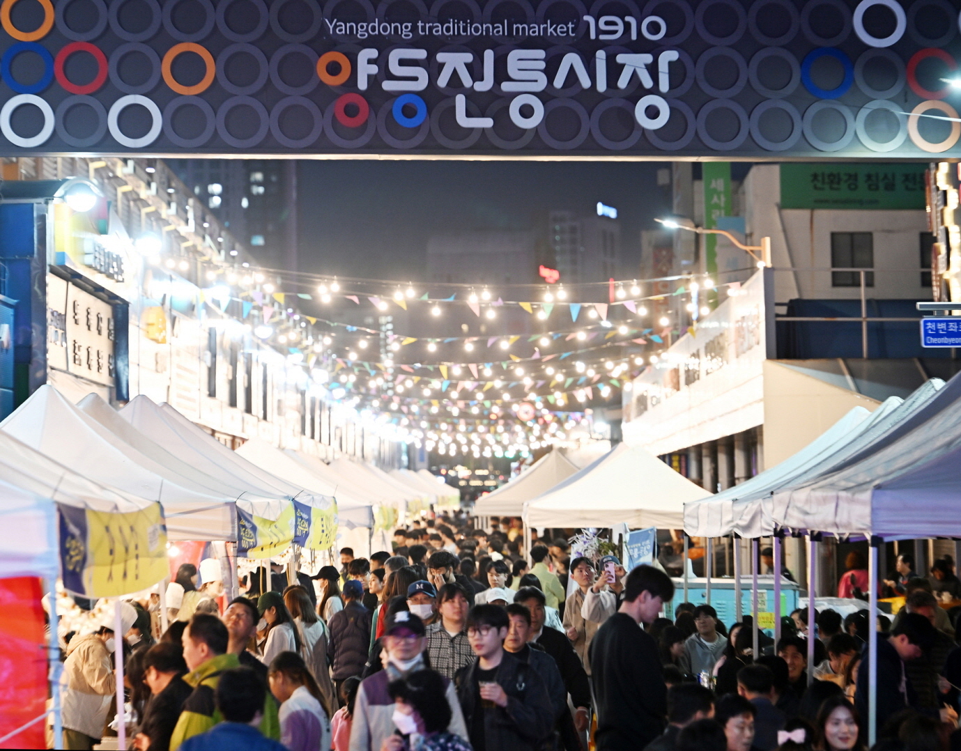 ヤンドン(良洞)伝統市場の地域貢献は今も続けられています。お年寄りに安く昼食を提供する良洞1,000ウォングクシ(にゅう麺)をはじめ、体の不自由なバリスタ訓練生のためのリバーマーケット276の中のカフェ「モアレス」、クッキング・工芸・ゼロウェイストなどの体験プログラムも提供されています。地元の人々と観光客向けの様々なイベントも開催されています。春には各種のご当地グルメやB級グルメとともにビールを楽しむ良洞樽ビール祭りが開かれます。1,000ウォンあれば生ビールが1杯飲めます。秋には魚介類の干物市場とのコラボで、各種のおつまみとビールが楽しめる良洞干物・ビール祭りが開かれます。
