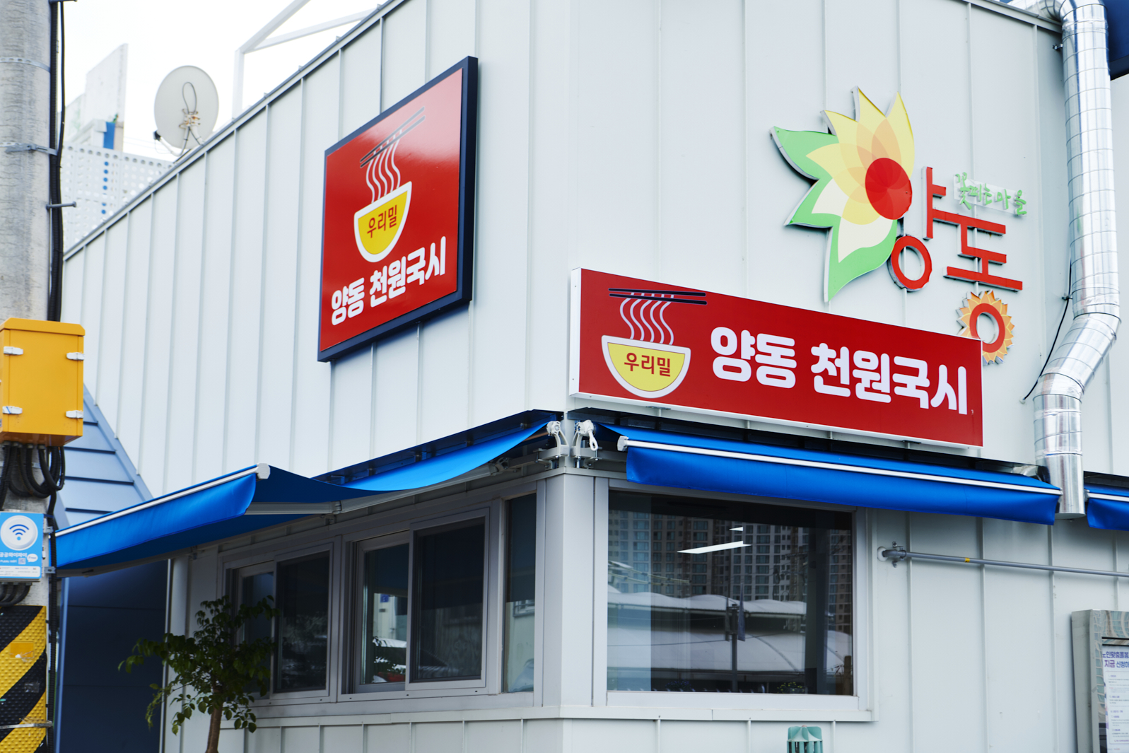 ボリュームたっぷりのにゅう麺がたったの1,000ウォン。光州広域市西区庁と西区シニアクラブのコラボで、在来市場の活性化と国産小麦の消費促進を目的として、格安の店がオープンしました。50歳以上の住民や良洞伝統市場の利用客(当日利用のレシート持参者)を除いた一般の人には3,000ウォンで販売しています。