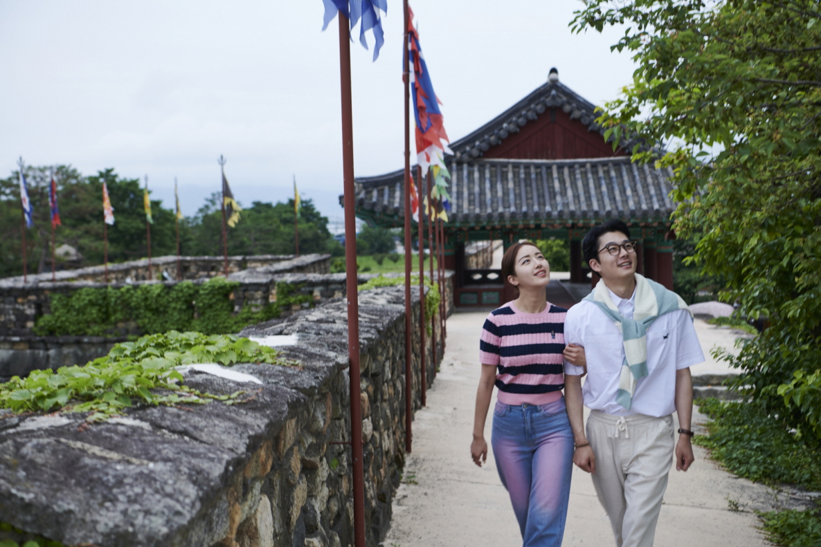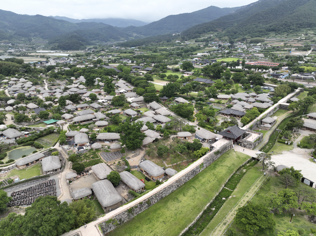敵の侵入に備えて土の代わりに石を積み上げた強固な城郭と、集落をなしている218軒の草ぶきの家屋が朝鮮時代の姿のまま保存されている村です。今も城内外では住民が窯に火を焚き、農業を営みながら生活しています。民宿を兼ねている家も多いので1、2日ほど泊まってみるのもいいでしょう。週末の常設体験や公演、平日の常設体験などが実施されており、カヤグム(伽耶琴)演奏や『宮廷女官チャングムの誓い』の牢獄体験、機織りなどの体験に参加してみるのもいいでしょう。城壁の上に上がって、村を背景にSNS映え写真を撮るのもお忘れなく!