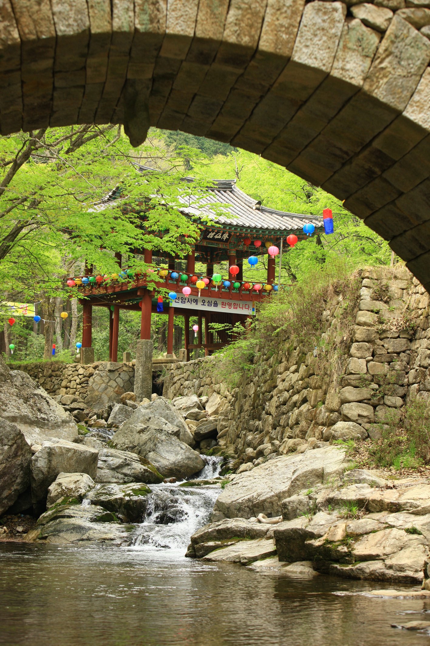ユネスコ世界遺産に登録され、世界的に価値が認められた仙岩寺。森に足を踏み入れるとまるで仙人が住む世界に入ったような神秘的な雰囲気です。「韓国で一番美しい」という修飾語がつくスンソンギョ(昇仙橋)やカンソンル(降仙楼)を始め、ウォントンジョン(円通殿)の垣裏の白梅や覚皇殿の垣根道に咲く紅梅、統一新羅時代と高麗時代の仏教文化が窺える貴重な文化財約2,000点を収蔵している聖宝博物館まで見どころ満載です。「韓国で一番きれいなトイレ」に挙げられる仙岩寺の解憂所(トイレ)も見どころのひとつです。