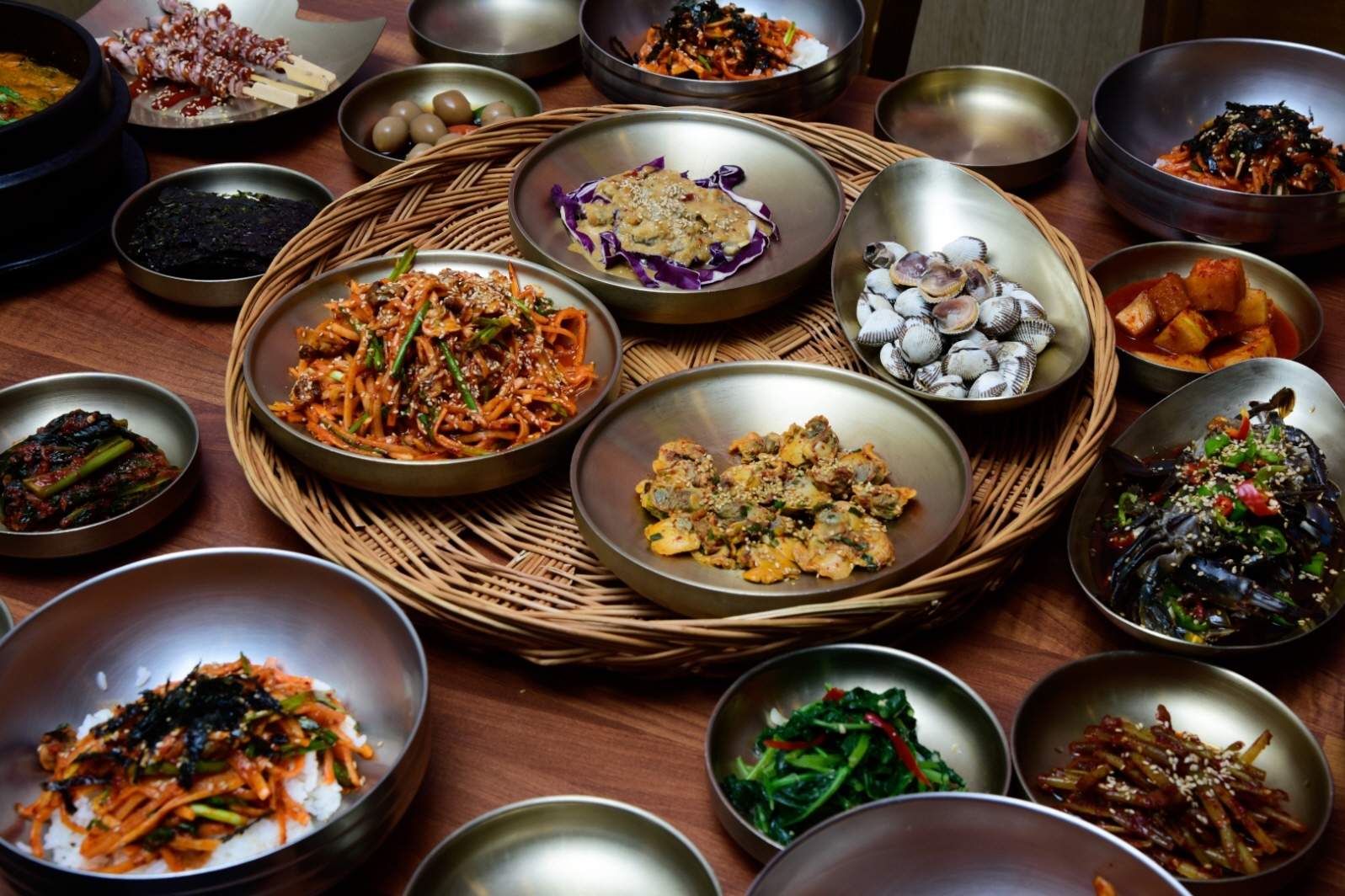ハイガイで有名なのはポルギョ(筏橋)ですが、順天でもハイガイが味わえます。ハイガイ定食を注文すると、甘酸っぱいハイガイの和え物から磯の香が楽しめるハイガイの蒸し物、さっと茹でてタレをかけて食べる味付けハイガイなど、ハイガイを用いたさまざまな料理が数々のおかずとともにテーブルいっぱい並べられます。