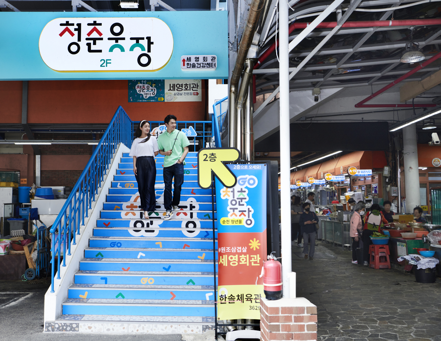 クッパ通りの2階に上がると青春ウッチャンが新たな変身を準備しています。順天地域の若者たちがアイデアを出し合って伝統市場に若者パワーを取り入れようとしたところで、仄かな照明と雰囲気のあるインテリアはフォトスポットとしても最適です。