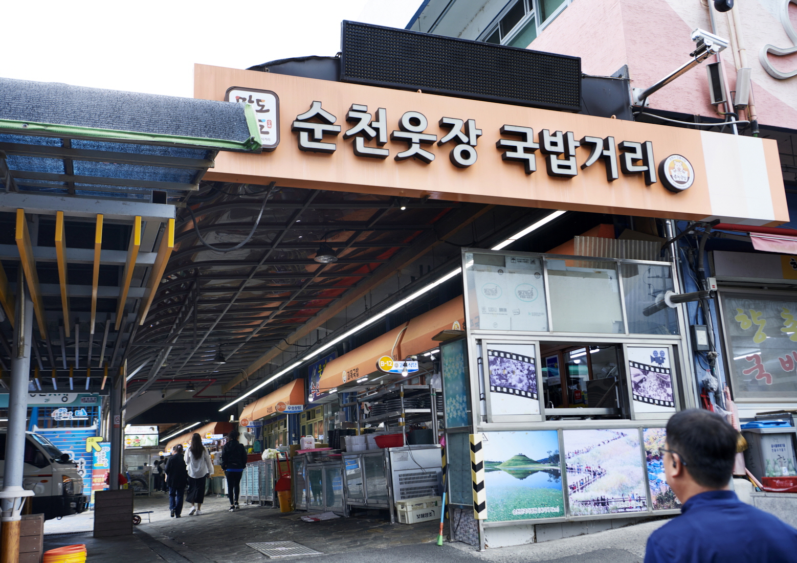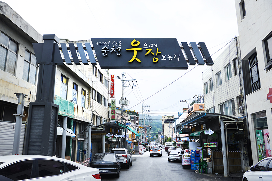 豊かな田んぼと広い海、干潟、深い山を有する順天。クリェ(求礼)やポルギョ(筏橋)、クァンヤン(光陽)の市場に行かないと買えない地域の特産物が順天に全部集まります。「百年ウッチャン(上の市場)」と呼ばれる順天ウッチャンの底力はそこにあります。毎日開かれる常設市場も見どころが多く、さまざまな食べ物が並びます。毎月5と0の付く日に開かれる5日市には、全羅南道各地から取り寄せた食材や穀物、野菜、とれたての新鮮な海産物が多く揃います。順天ウッチャンの入口の看板に書かれているように、大勢の人が「ウッ(笑いながら)チャン(買い物に)」やって来るところです。
