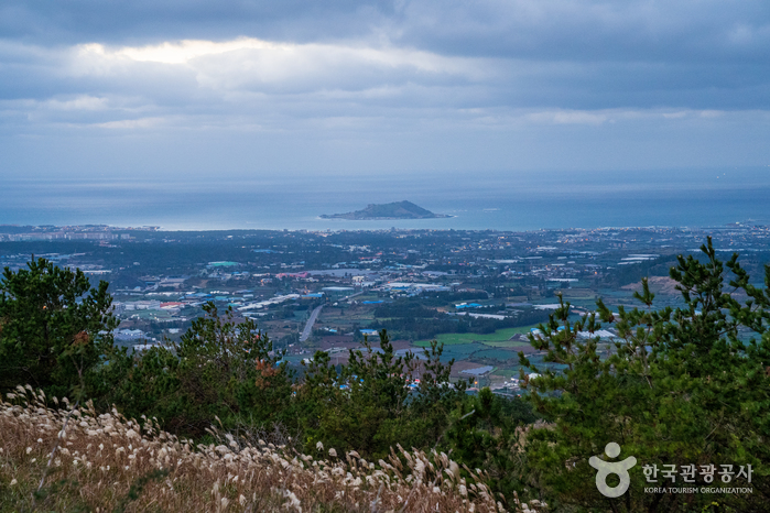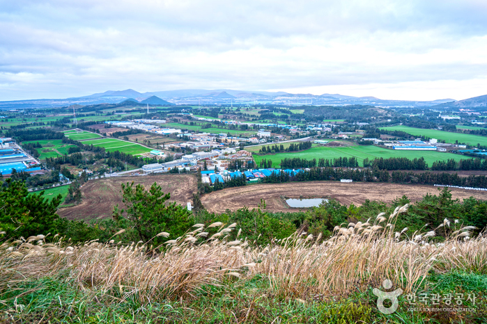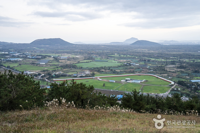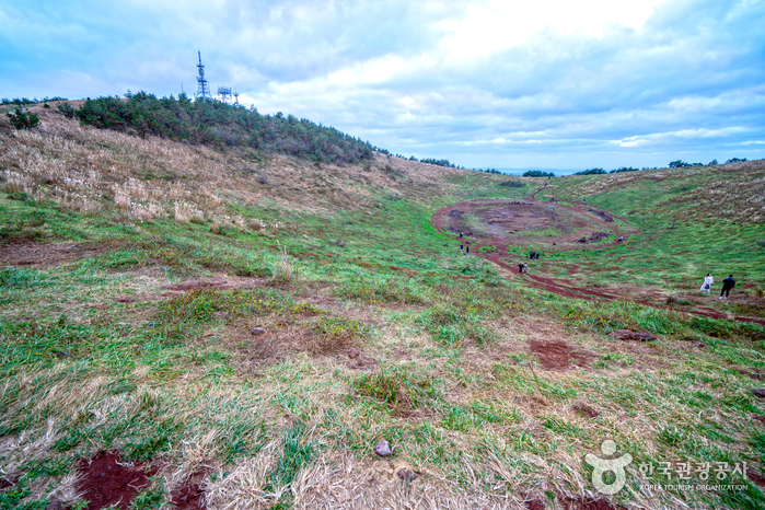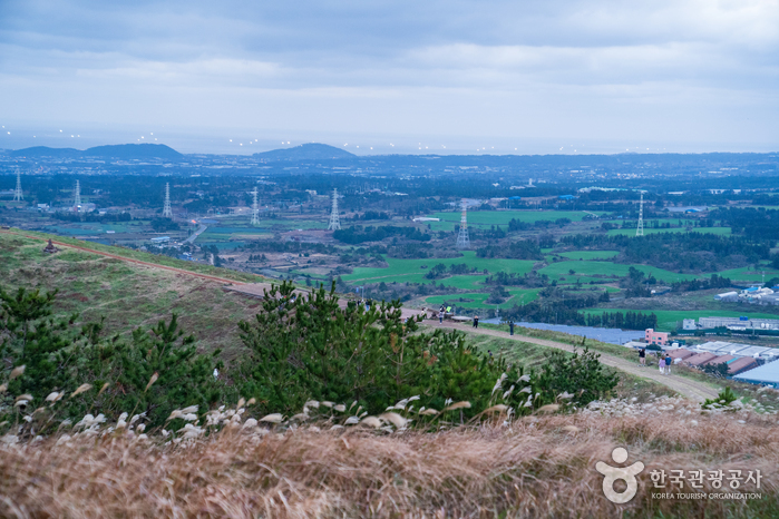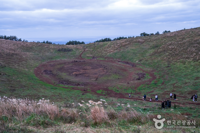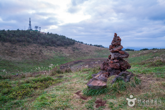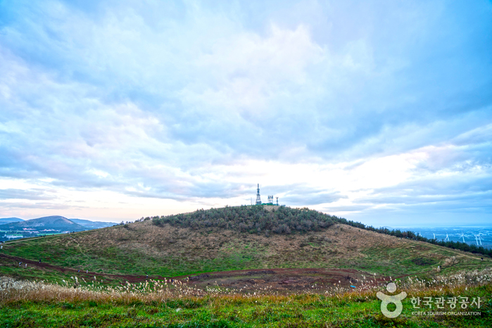 西部中山間地域を代表するオルムの1つです。山頂部に大きな円形噴火口と山頂火口湖を有する新期の側火山で、南北の2つの峰が東西の低い鞍部につながり、円形の噴火口(深さ52メートル)を形成しています。噴火口内の山頂火口湖(別名:今岳潭)は、昔は水量が豊富でしたが、現在は火口の底が見えます。「コム・カム・クム」などはその語源から神を意味する「コム(古語)」と通じるもので、同じ意味をもつ「コム」系の言葉として古朝鮮時代から使われてきたといいます。つまり、「クモルム(クムオルム)」は神という意味の語源をもつ呼び名と解釈され、古くから神聖視されてきたオルムであることがわかります。松、杉、野茨、菩提樹、カマツカなどが生息する円形噴火口と山頂火口湖です。
