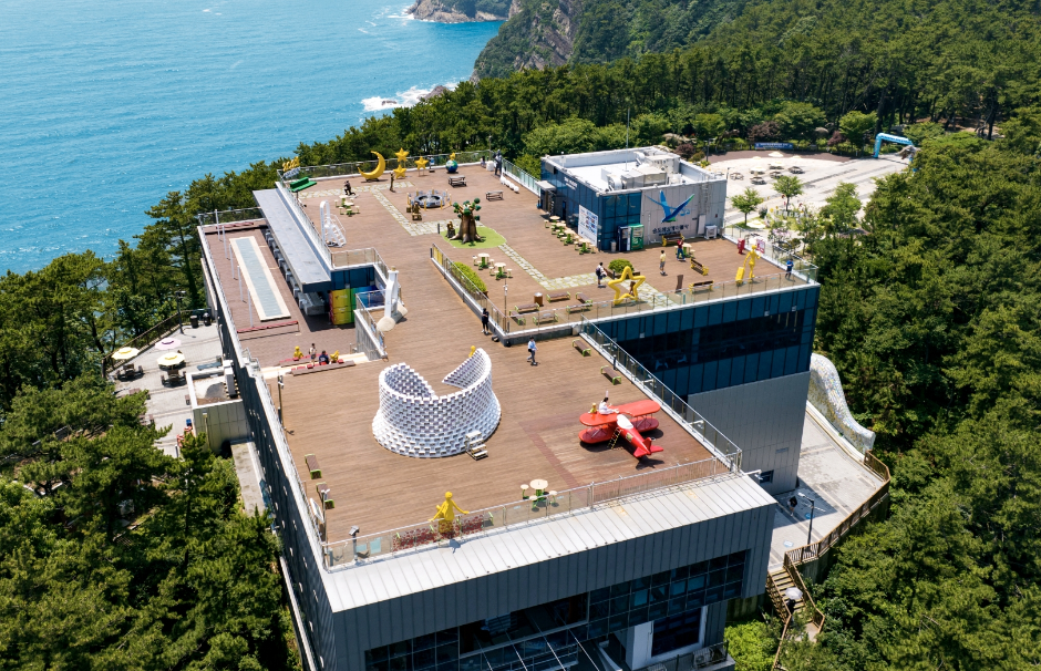 松島(ソンド)海上ケーブルカーの松島ベースステーションからケーブルカーに乗り、松島の海岸や影島(ヨンド)などの周辺の風景を15分ほど観覧しながら移動すると、松島スカイパークに到着します。地下1階にはケーブルカーミュージアムである松島ドッペルマイヤーワールド、1階にはチケット売り場と乗り場、コンビニなど、2階にはオーシャンテラス、カフェヒューマンアートホール、3階には星の王子さまのテーマパークであるスカイハーバー展望台があります。