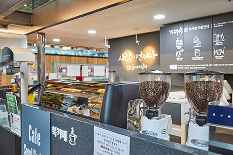 カフェの随所には世界的に有名な製鉄会社POSCOの面影を感じられ、コロナ禍以前にはカフェ内にPOSCO STEEL GALLERYも設けられていました。