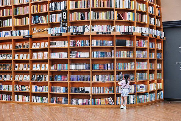 ピョルマダン図書館は他の図書館とは比較にならないほど大きな書架スペースが自慢の図書館。