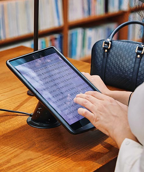 ソウル市内を東西に流れる漢江(ハンガン)に架かる橋・漢南(ハンナム)大橋の眺望が美しい屋外テラス、一人ずつ個別の読書スペースが確保され電源コンセントも設置されているノートブックゾーンなどが完備、またブックラウンジ内には高級ライフスタイルショップの家具なども置かれ、一日中ゆったりとした時間を過ごすことができるスペースとなっています。