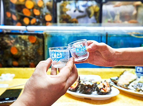 海がすぐそばにある屋台の椅子に座って味わう海の幸は素朴ながらも何事にも代えがたく、また釜山の人々の情にも触れる素晴らしい機会にもなります。