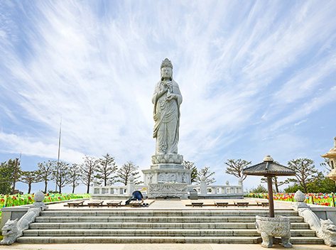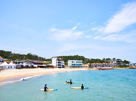 遠浅の海で海水浴には絶好のビーチとなっており、小さなお子様連れでも楽しく過ごせる海辺です。海岸の近くにはカフェやコンビニ、飲食店をはじめ宿泊施設もたくさんあります。また洛山海水浴場のそばには江原特別自治道の東海岸にある関東八景のひとつに数えられる名刹・洛山寺もありますので、海水浴の後の観光におすすめの場所です。