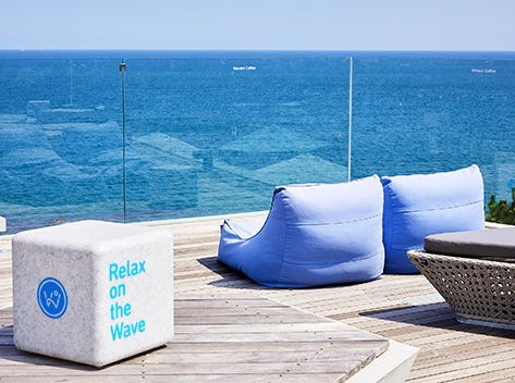 屋外にあるルーフトップをはじめ大きな窓ガラスのカフェ店内からも美しい機張の風景が眺められます。特にカフェの敷地内には至るところにパラソルやベンチ、ハンモックなどがあり、カフェとは思えない海外のリゾート地に来たかのような気分になれます。