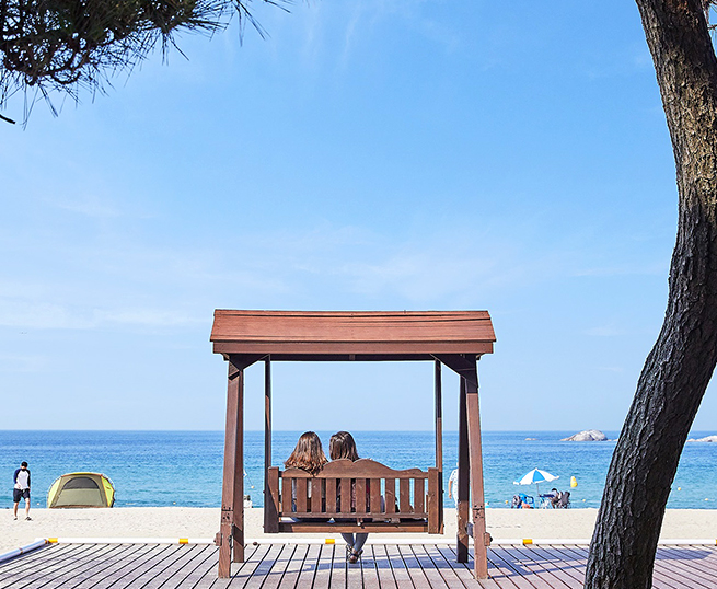 釜山広域市機張郡(キジャングン)にある林浪(イムナン)海水浴場。海水浴場の名前にある林浪は、松林の林、月明かりに銀色に光る浪(波)、この二文字から由来しており、名前のごとく美しい松林と海が自慢の海水浴場です。海雲台海水浴場など釜山で人気の海水浴場ほどは知られていませんが、物静かな雰囲気の浜辺で都会の喧騒から離れてゆっくりしたい方におすすめの海水浴場です。