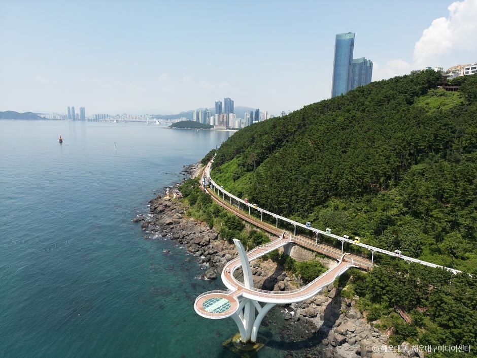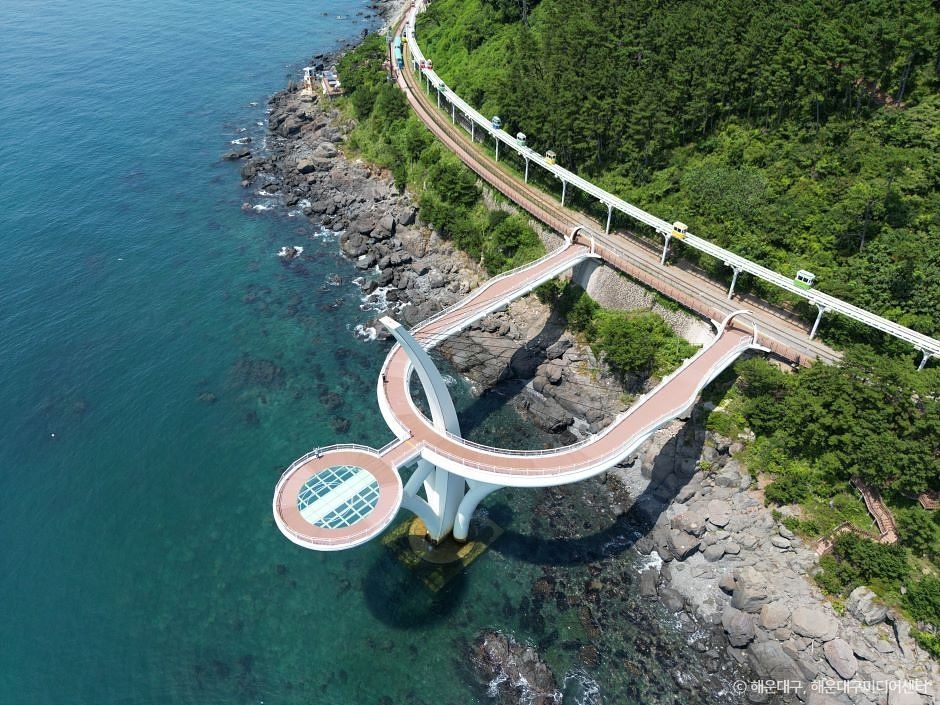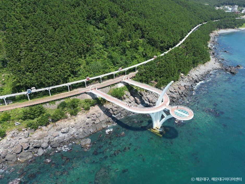 2024年7月27日にオープンしたヘウォル展望台はタルマジギル(月見道)の下にある、太陽(ヘ)と月(ウォル)が調和し、風光を享受するという意味をもつ展望台で、海面から高さ22m、海に向かって長さ134mの円形になっており、三日月形の主塔と下が見下ろせる直径15mの円形広場が設置されています。海雲台と東海を一望できる名所で、美しい日の出と日の入の風景を見ることができることから多くの観光客が訪れます。海雲台ビーチに近くアクセスしやすいスポットです。