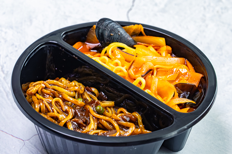 チャムチャミョン(ジャージャー麺とチャンポンの半々盛り)(짬짜면)