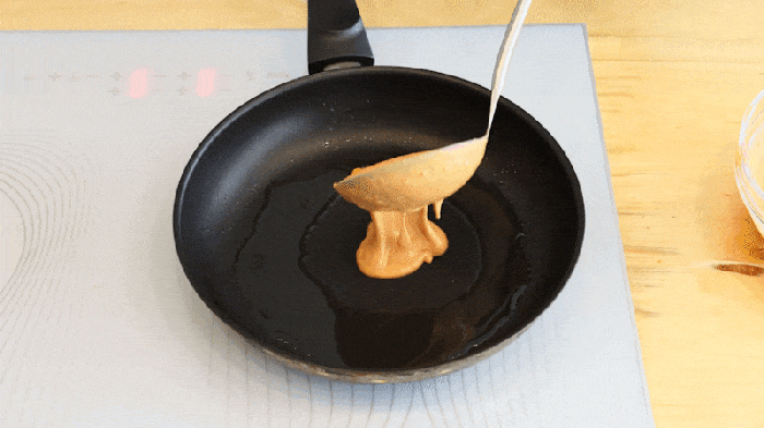 (4)生地に程よく火が通ったらひっくり返してパンケーキのように焼き色がつくまで焼く。