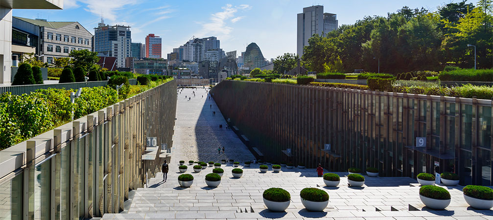 世界的な建築家ドミニク・ペローが設計した地下キャンパスが有名な韓国初の女学校で、周辺にレストラン、カフェ、美容室、ネイルショップなど多数