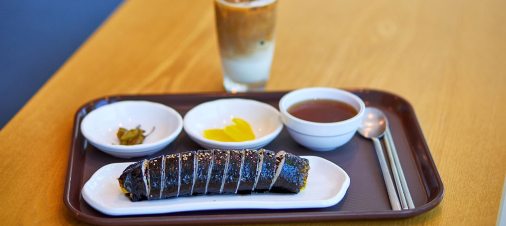 全羅北道の特産品がたっぷり入ったキンパプが買える「漁夫キンパプコーヒー」(어부김밥커피)