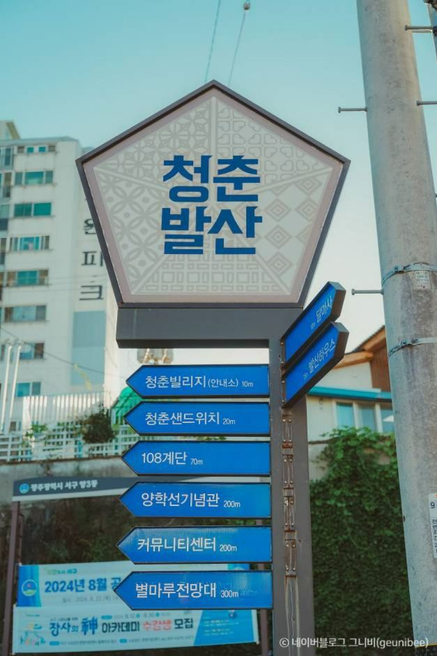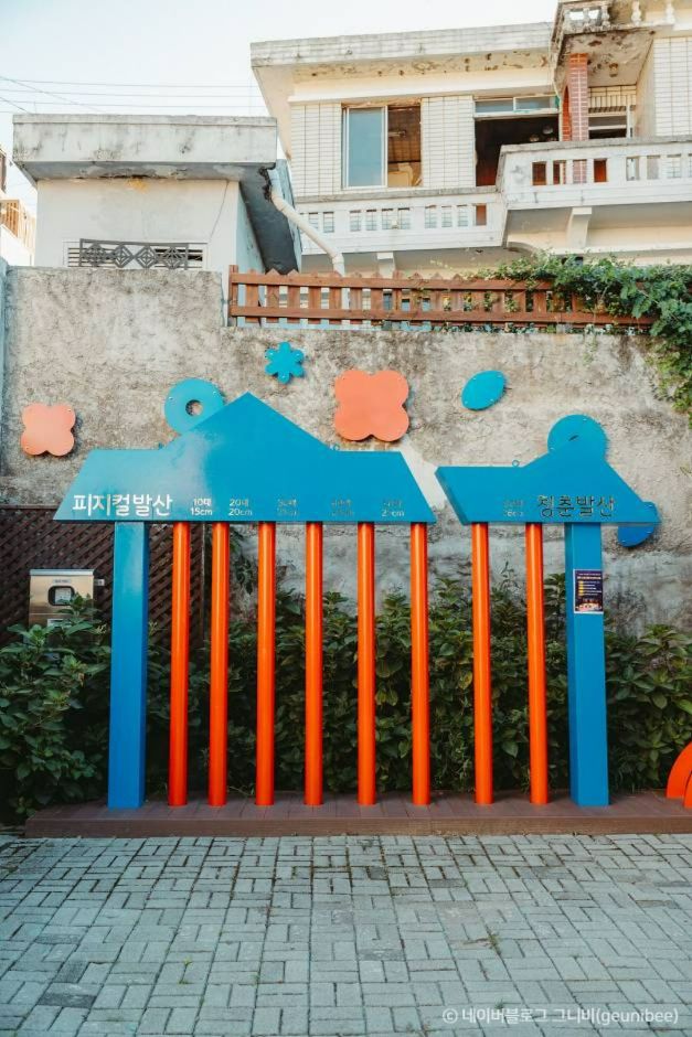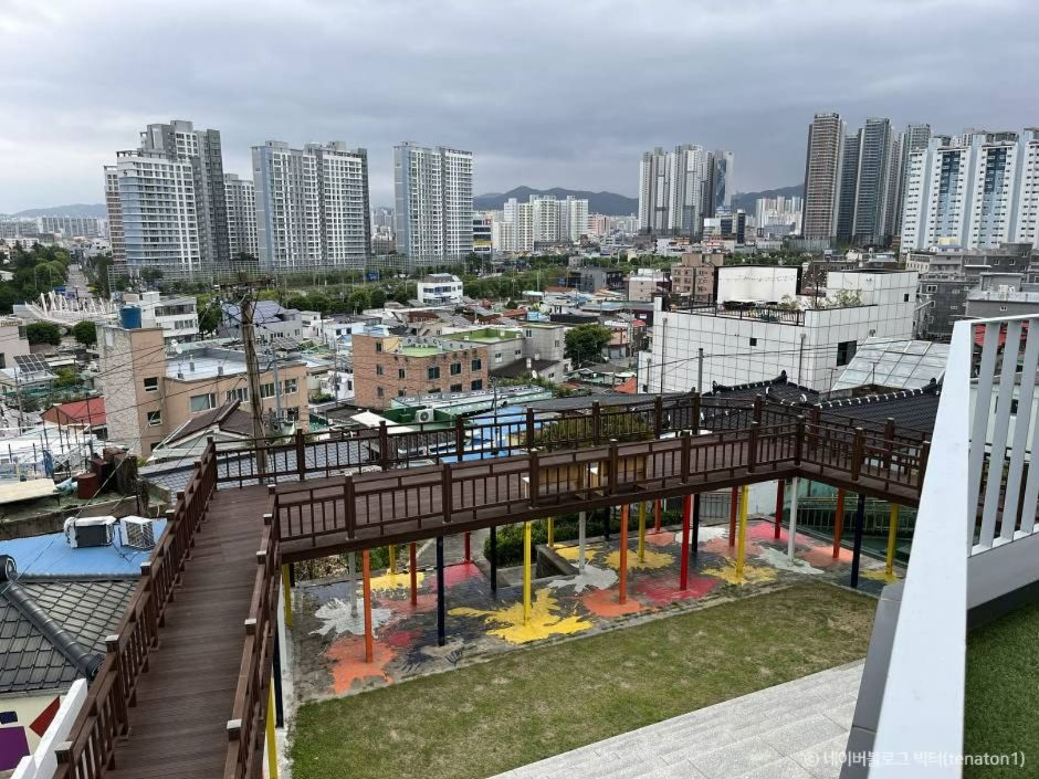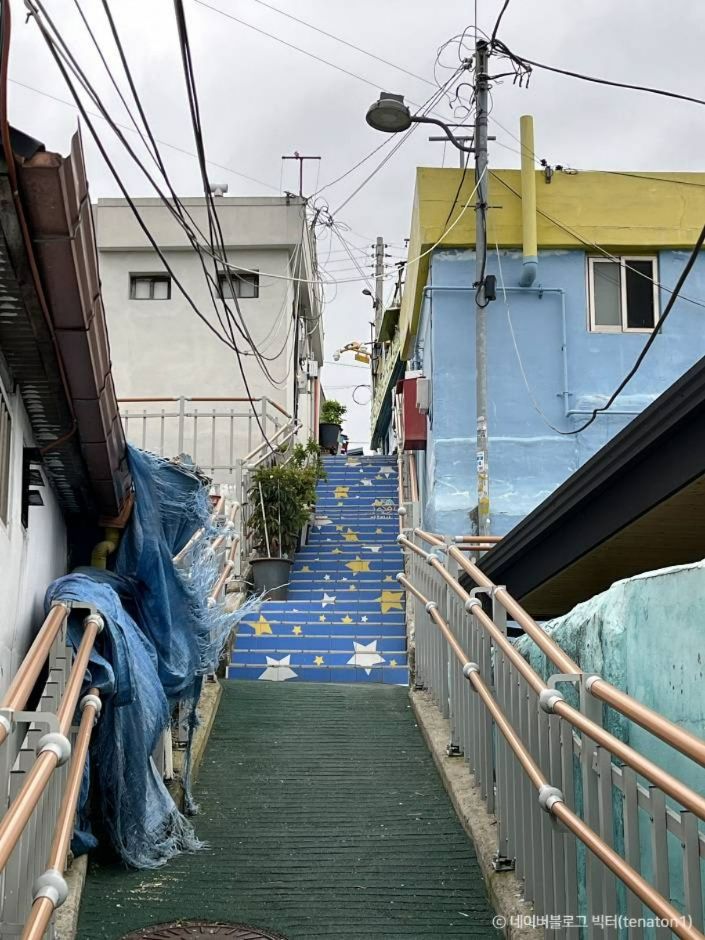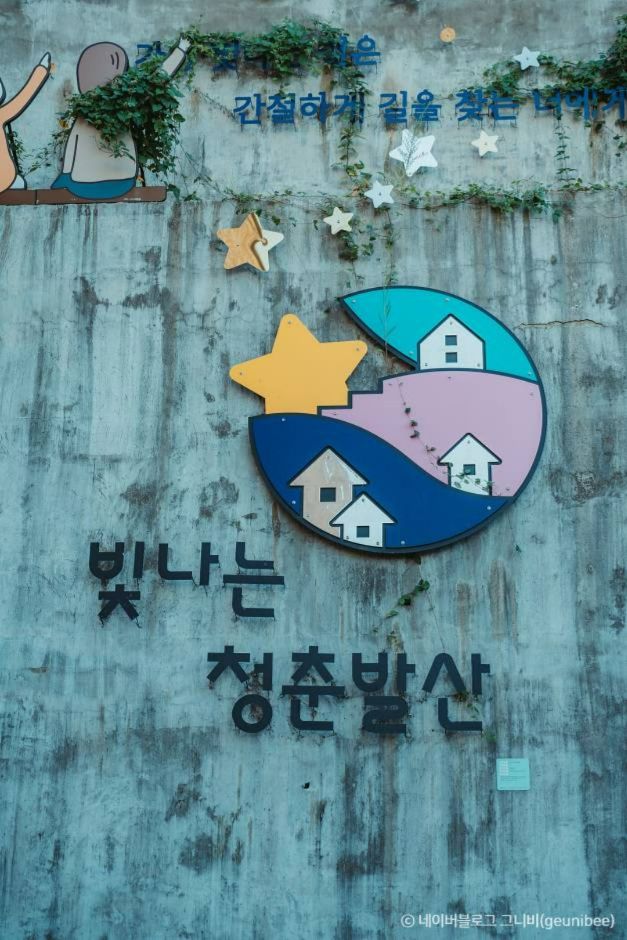 鉢山村(パルサンマウル)は光州(クァンジュ)の代表的な集落のひとつでした。丘の傾斜にひしめく家々、スレート屋根や藁葺き屋根、狭い路地、ところどころにある畑。貧しい集落でしたが、今は文化的価値を持った場所へと成長しました。韓国戦争後、避難民が集まって村が形成され、1970年代には全国から働き口を求めて集まった若者たちによって全盛期を迎えました。70~80年代に紡織女工が集まって暮らしていた村はその後、産業構造が変わり空き家が増えていきました。若い芸術家たちは時間が止まった鉢山村をカラーアートプロジェクトと公共デザインによって色彩感あふれるスポットに変貌させました。