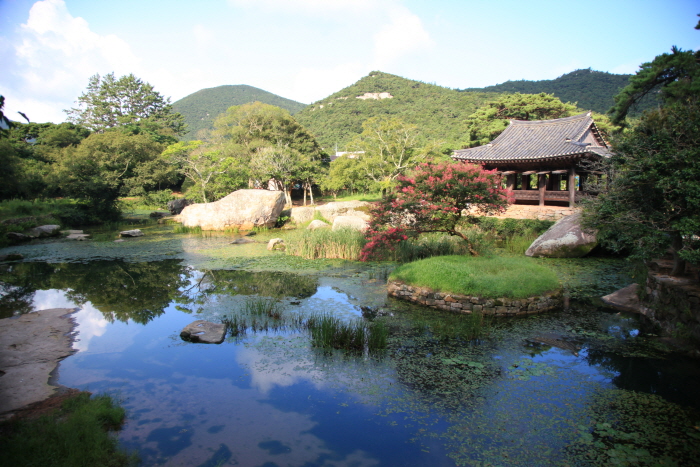 「甫吉島(ポギルド)」は莞島国際港から12キロメートルのところにある島です。孤山(こさん)尹善道(ユン・ソンド)が船で済州島に行く途中、激しい台風から逃れるためたどり着きました。美しい山水に魅了され、ここの地名を芙蓉洞と命名して滞在することを決めた場所です。10数年間、ここでの生活を楽しみながら洗然亭や楽書斎など25の建物を建てました。彼の有名な作品「漁父四時詞」はこの場所で誕生しました。この島には海水浴場が3ヶ所あり、夏の避暑地として人気です。その中でも島の南側にある礼松里(イェソンリ)海水浴場は砂浜ではなくて小石の浜辺は1.4キロメートルほど続いており、天然記念物である礼松里常緑樹林と調和して美しい景色を作り出しています。大小の島々の間を甫吉島を訪れる船が青い海を進む姿は絶景です。その他、礼松里の日の出、ポジョク山、ソンチャン里の日没なども見どころとなっています。